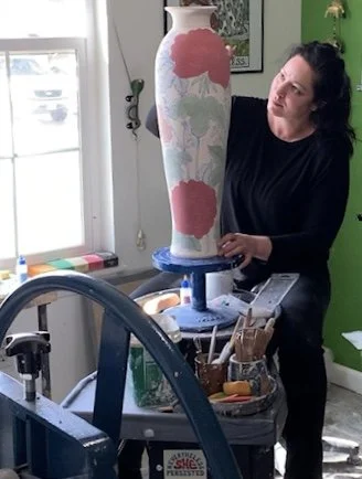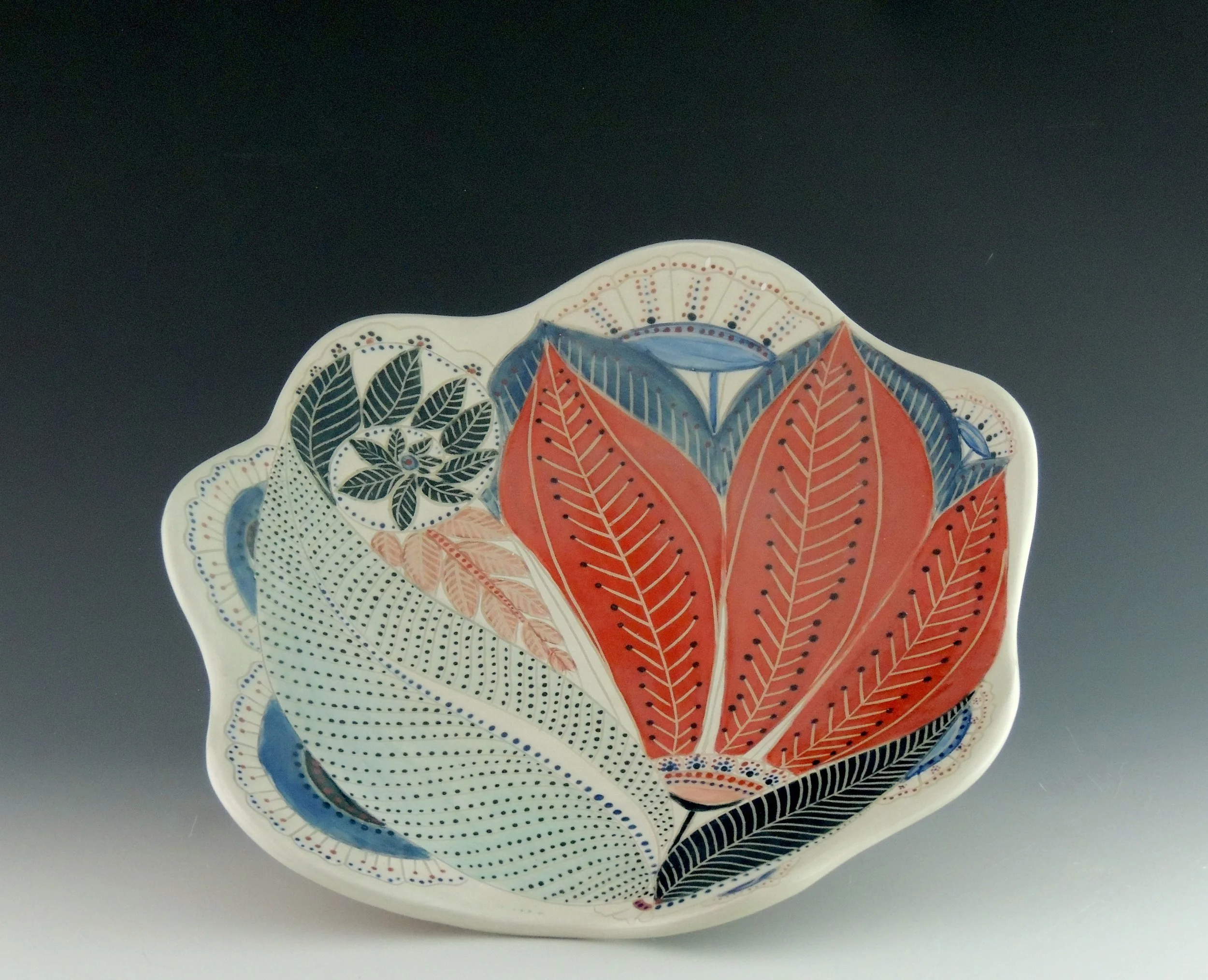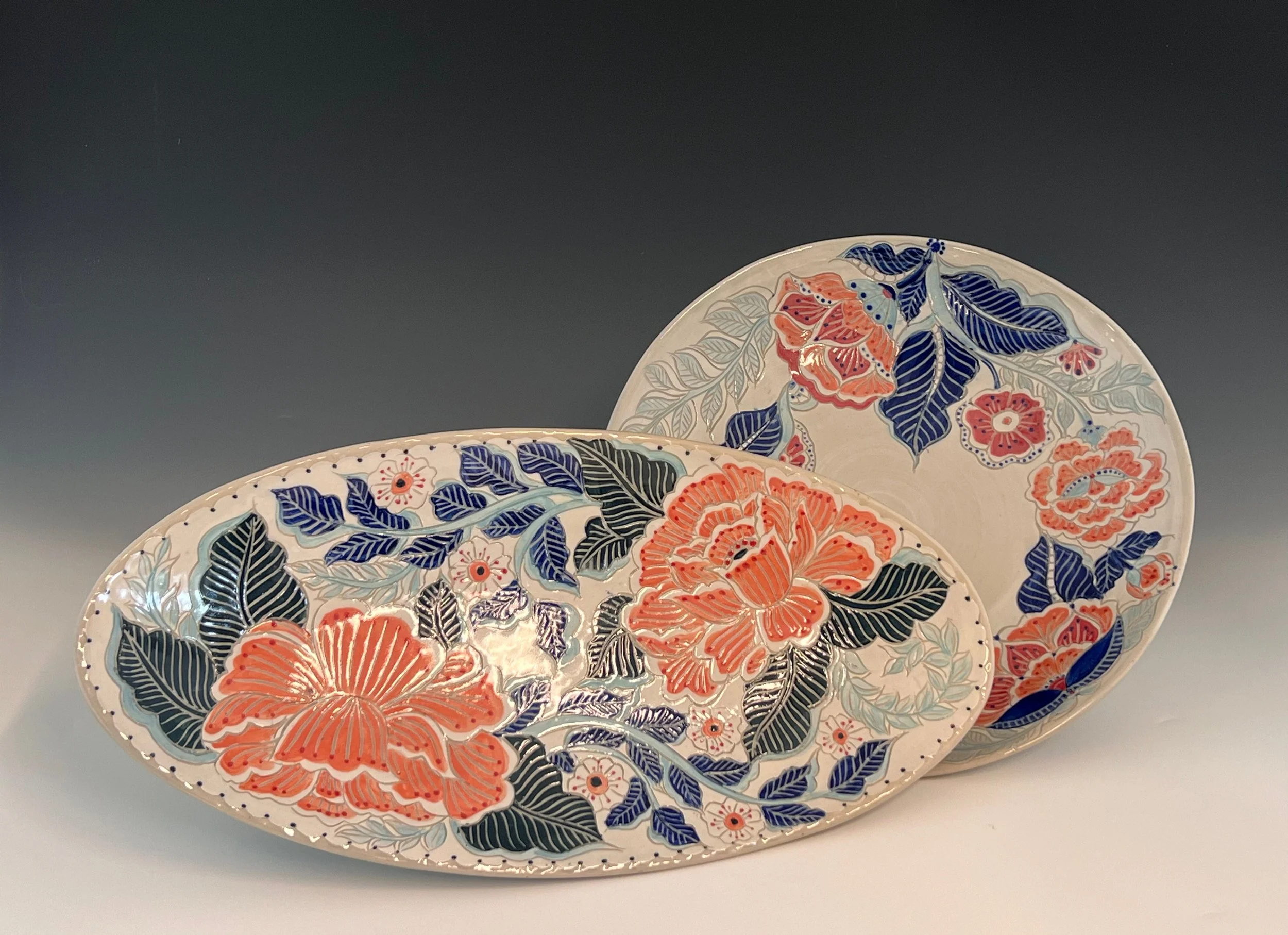 Elizabeth learned to throw at Greenwich House Pottery in 2007. Her surface decoration varies from carved patterns, surface inlay (mishima), and sgraffito. All her designs are done freehand. She has been a member of the guild since 2018.